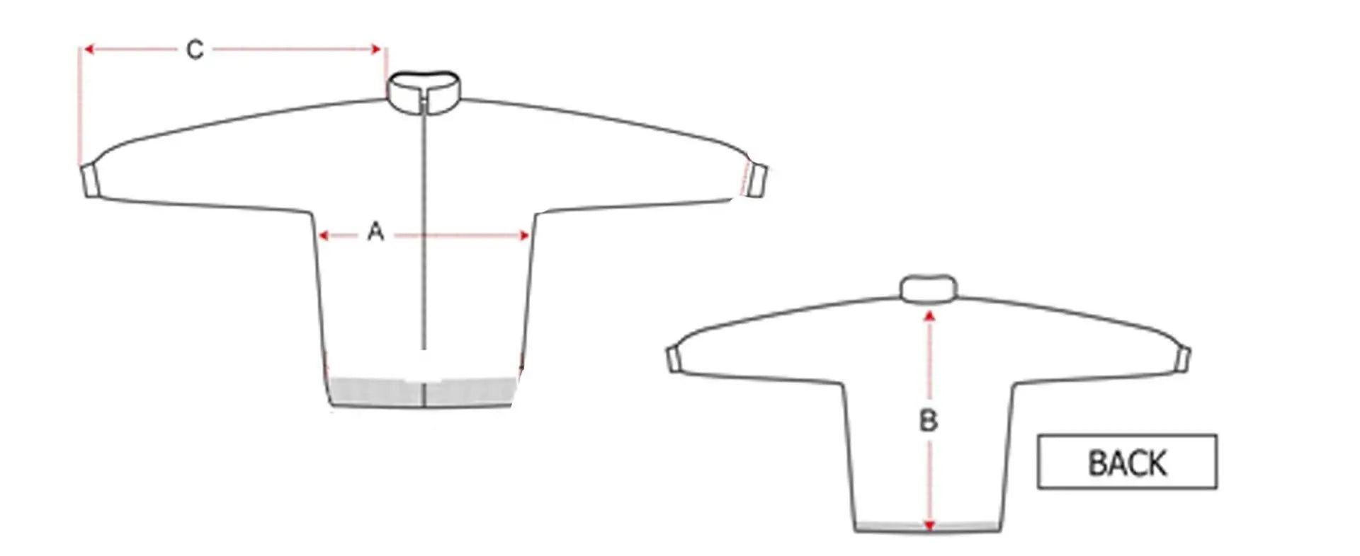 | B - Body/Back Length | 60 | 64 | 68 | 71 | 74 |
