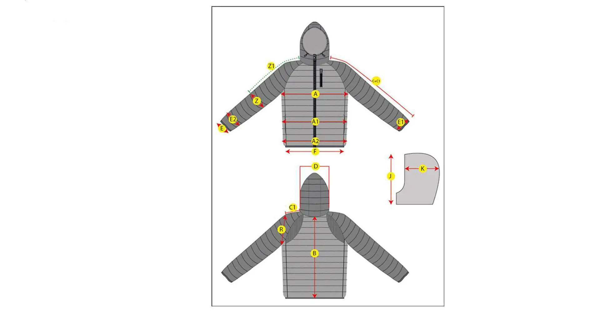 | C1 - Sleeve Length Seam | 11 | 11,5 | 12 | 12,5 | 13 |